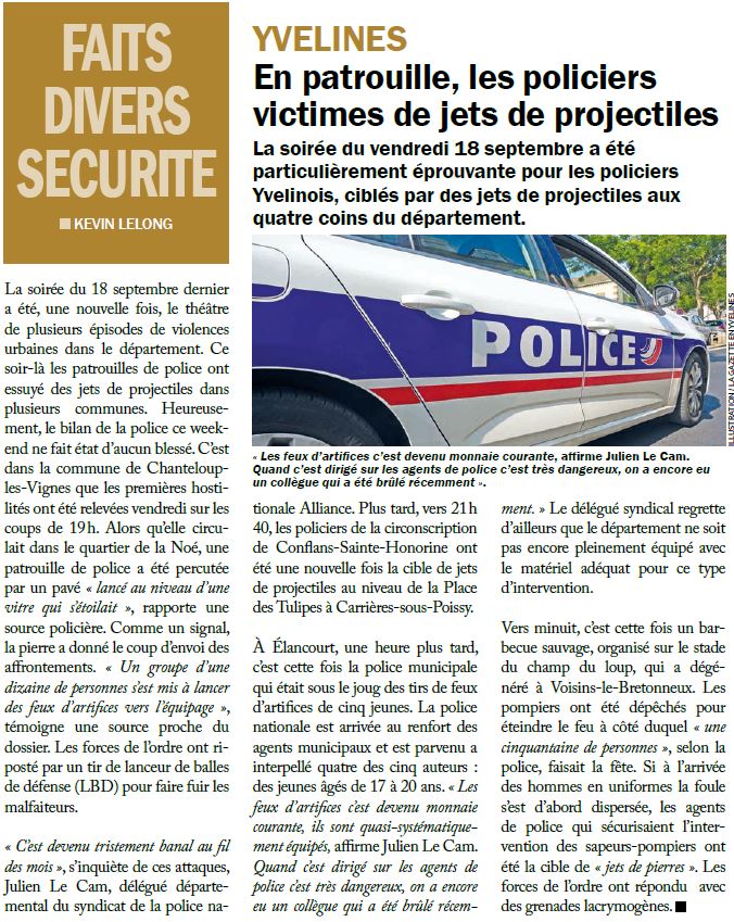 La Gazette des Yvelines 230920 En patrouille, les policiers victimes de jets de projectiles