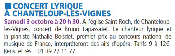 Le Courrier des Yvelines 300920 Concert de musique lyrique à Chanteloup les Vignes
