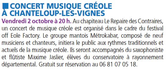 Le Courrier des Yvelines 300920 Concert de musique créole à Chanteloup les Vignes