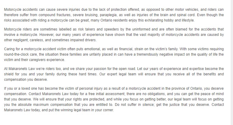 Motorcycle Accident Lawyer Orillia - Makaronets Personal Injury Law (705) 242-2761